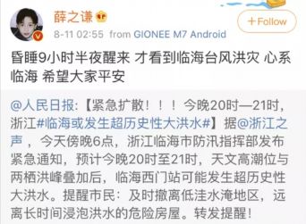 挨骂后,薛之谦删掉了微博,并且在半夜转发了条灾情微博表示:昏睡9小时,才知道洪灾,希望大家平安。
