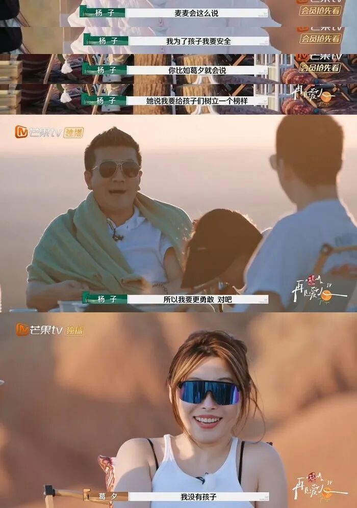 杨子立刻接话:“你们发现没有,人都特别喜欢给自己找理由。就比如说麦麦你的理由是为了孩子所以不极限运动,而葛夕你要给孩子树立榜样。”