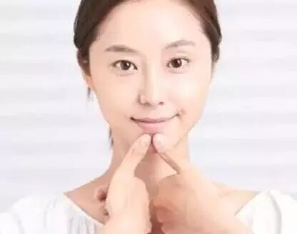 STEP2如图所示用双手的食指,分别按压鼻翼两侧、嘴角的法令纹中心、眉心、内眼角以及外眼角各10秒钟。