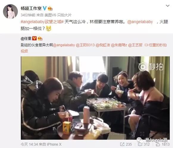这回《欲望之城》剧组吃饭时,任重拍了一段视频,杨颖吃泡面,别人吃大餐!你们没法黑杨颖了吧?