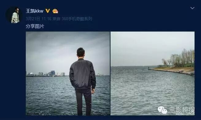 3月21日,演员王凯在微博晒出两张照片,照片中王凯站湖边,面朝辽阔的水面,深沉的背影引人着迷。