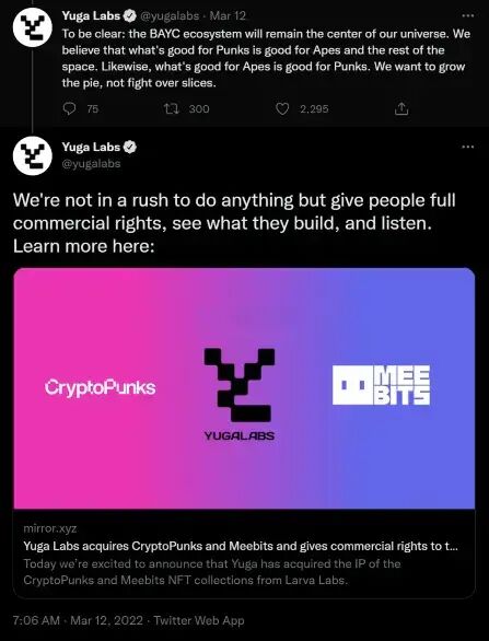 打算将 PFP 与土地包圆了的 Yuga Labs 有着更多让市场相信的可能性: