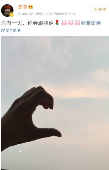 陈晓和陈妍希公布恋情的方式也够独特,两个半心,组成一个爱心。
