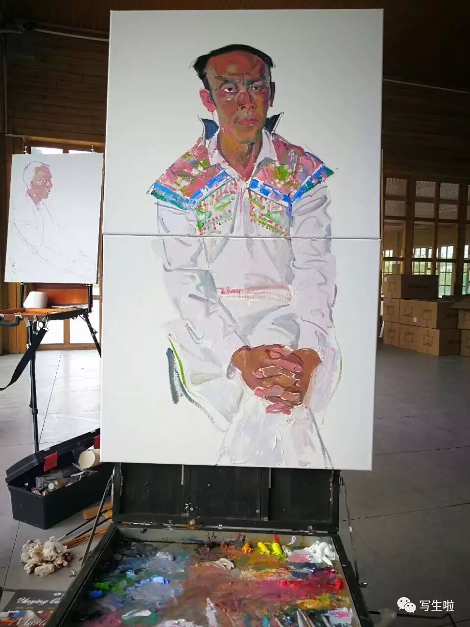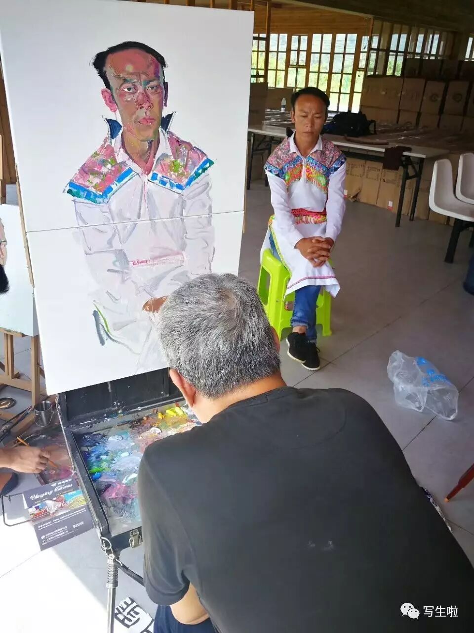 为画家管朴学画肖像