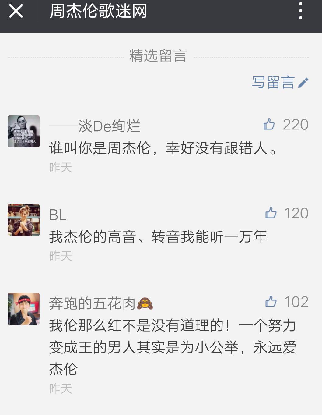 hey,偷偷告诉你们一个小秘密,以后每条文章大家都可以在底部留言,留言被点赞最多的一位我们会送您关于周杰伦的小礼物,当然不是每篇文章都会有礼物,我们不会告诉你那一篇抽取,只会随机选取文章!