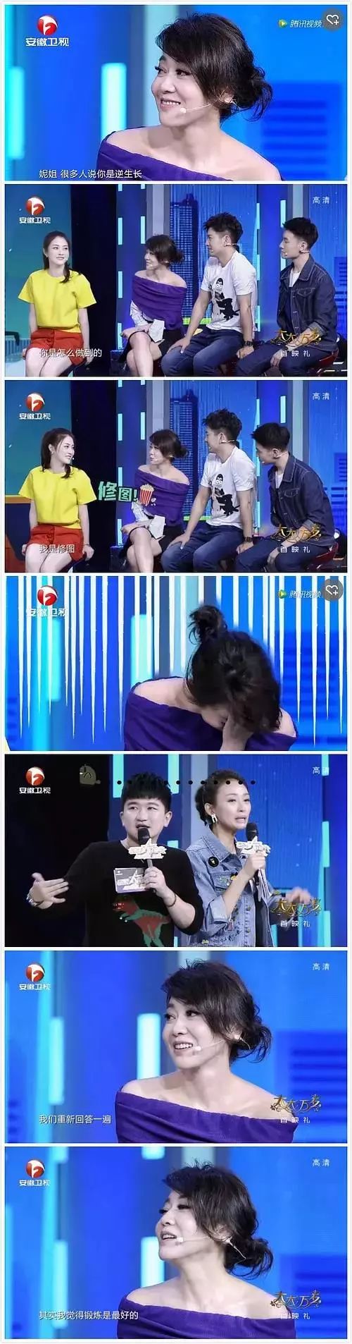 而皮肤状态被问到是如何做到逆生长的时候,闫妮回答“修图”被主持人要求重新回答,哈哈哈。