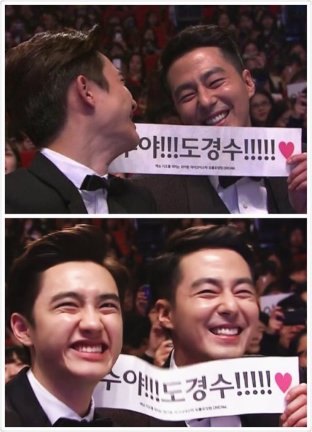 最好的前后辈感情 大概就是 你是我的榜样 你陪着我练习 带着我入戏 有那么一天你和我一起走红地毯 后来你看着我到舞台拿奖 你坐在台下举着“暻秀呀 都暻秀”的手幅 然后笑得像傻瓜 最幸福的事是我能越来越像你 希望每个人初出茅庐的时候都能幸运地遇到一个赵寅成 陪着你发光发热 做着最好的都暻秀。