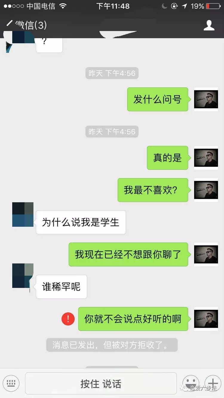 这里被她拉黑了,因为之前探探上她发过电话给我,后来打了电话给她,在电话里聊了二十分钟,又把我拉出来了
