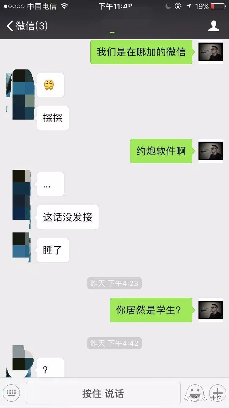 这个妹子是探探里加的,从加到微信到XX差不多一个月的时间吧