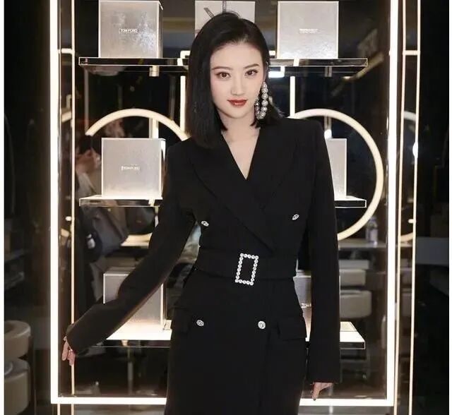 不得不说孙俪的气质真的很好,穿上这一身搭配尽显利落洒脱,知性优雅的风韵,而整个造型也是以黑色为主调,没有任何其他色调添加,让干练的西装显得更加纯粹高级,面料则拼接了缎面和棉质,可以起到些许的提亮效果,更具层次感。