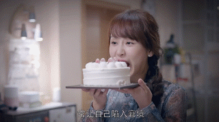 吃蛋糕都不带切的,捧着一整个直接上嘴咬↓