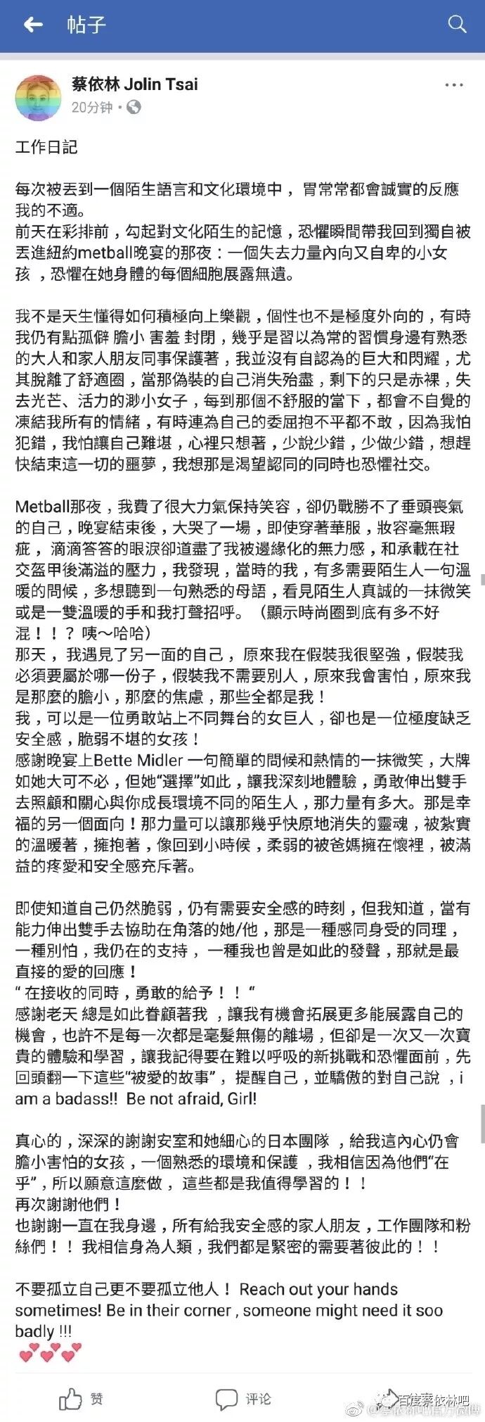 也谢谢一直在我身边,所有给我安全感的家人朋友,工作团队和粉丝们!! 我相信身为人类,我们都是紧密的需要着彼此的!!