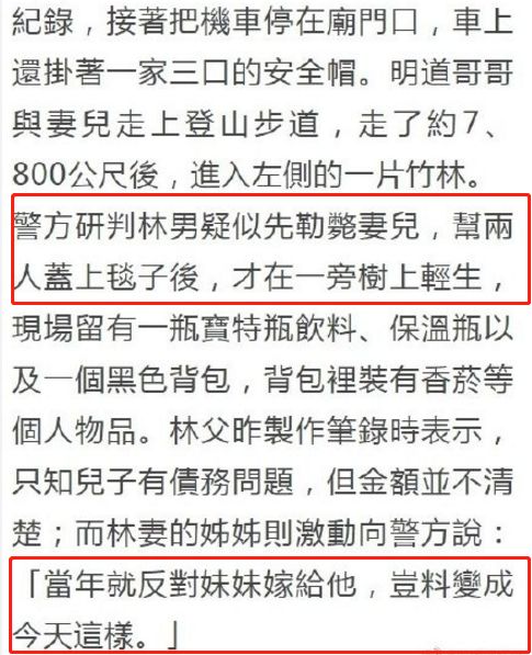 1月5日下午,有人发现明道的哥哥一家三口身亡于台北市的一处山林中。