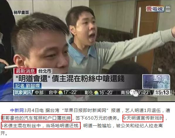 当时明道正在参加电视剧发布会,债主混在粉丝堆里进来了,明道正采访的时候被指着脸骂要求还钱。