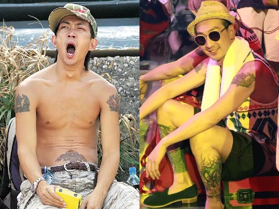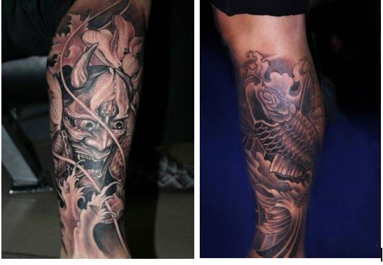 左腿上的魔鬼纹身代表他曾经加入的乐队,右腿上是一条锦鲤求好运的。