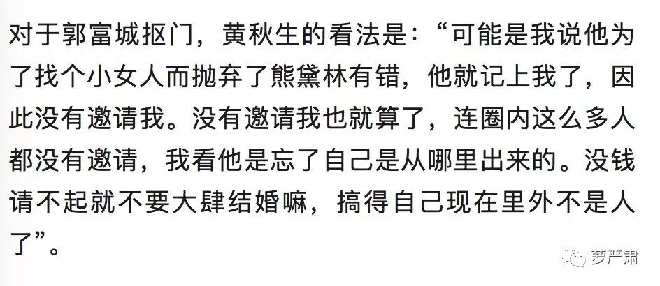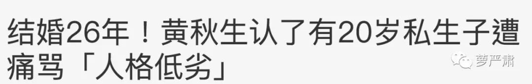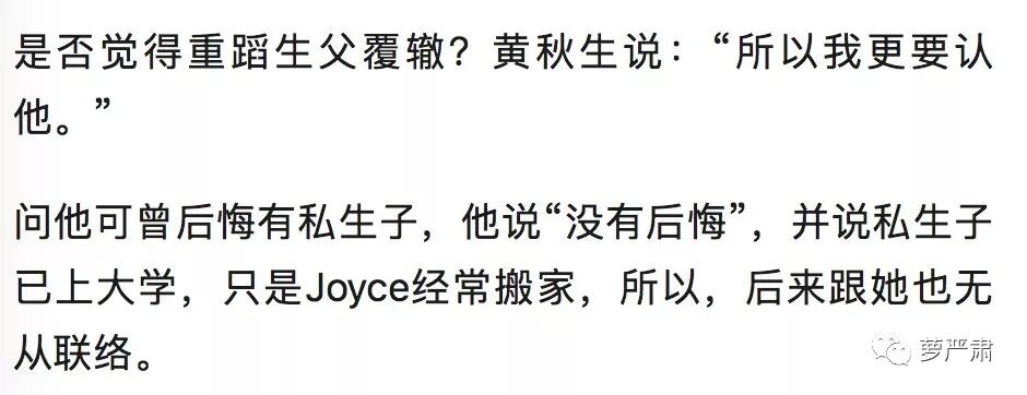 他更承认,“老婆早就知情”,他的私生子也见过黄家亲戚。因为黄秋生自己也是私生子,所以“我更要认他”。