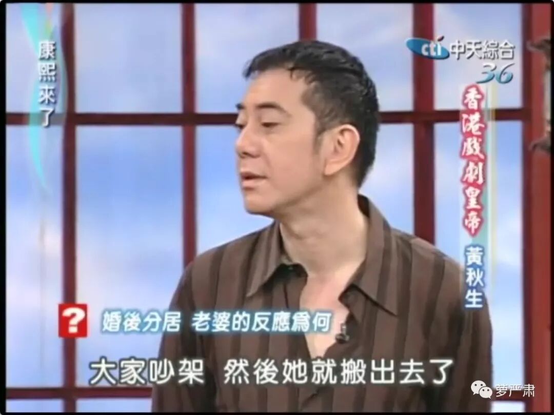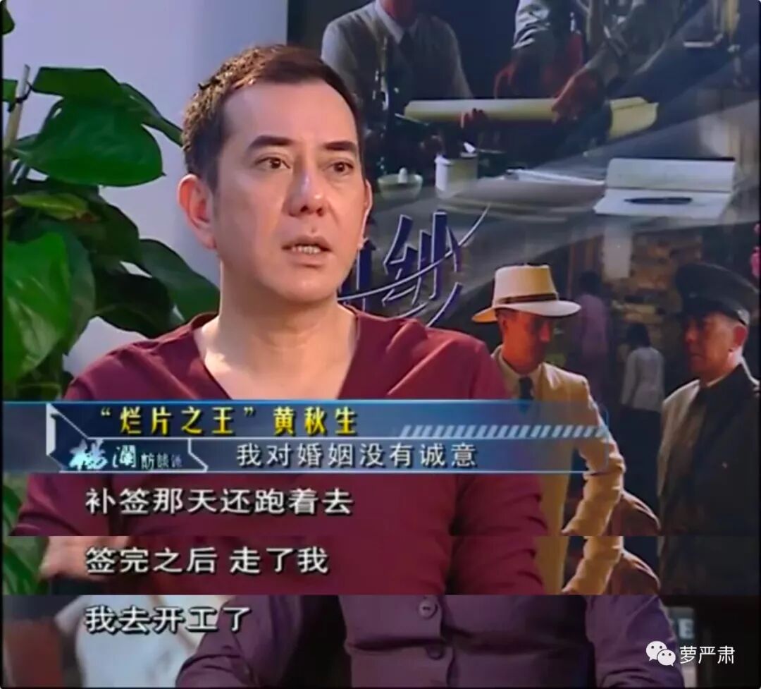 在2012年的杨澜访谈录中,黄秋生不讳言这场婚姻一开始是草率随意的,有责任没诚意,“我一点诚意都没有”。(杨澜表情:emmmm……)
