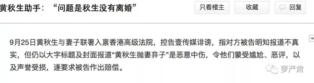跟女模特的绯闻导致某周刊直接报道黄秋生离婚,被黄秋生夫妇提告,黄秋生坚持说跟其他女孩只是朋友,黄秋生助理则强调他们没离婚。