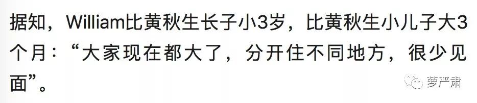Joyce的孩子William比黄秋生的小儿子只大三个月。所以应该是黄秋生太太有孕在身时,黄秋生跟情人往来,俗称孕期出轨。