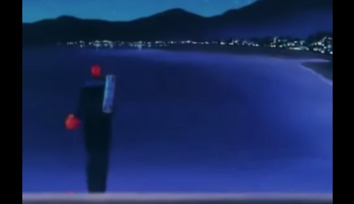▲片尾曲中独自走在放学路上的樱木,路的尽头就是大海