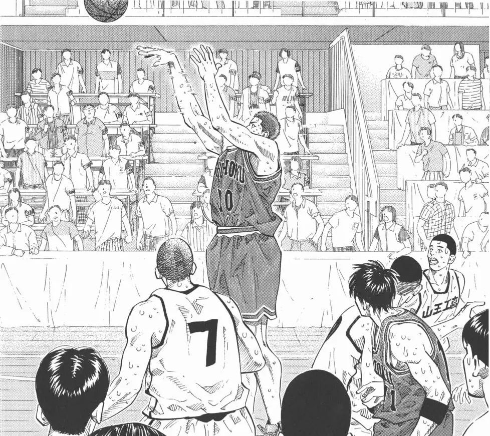 而灌篮高中的出现为运动漫画开启了一个新的时代。井上雄彦在比赛过程的创作中大量使用分镜头表现方式,不辞辛劳的大篇幅呈现动作细节,让比赛真正【活了起来】。