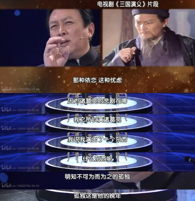 唐国强一个字都不会错,非常准确也很到位,他对这个诸葛亮下的苦功夫,一般人是不知道的。