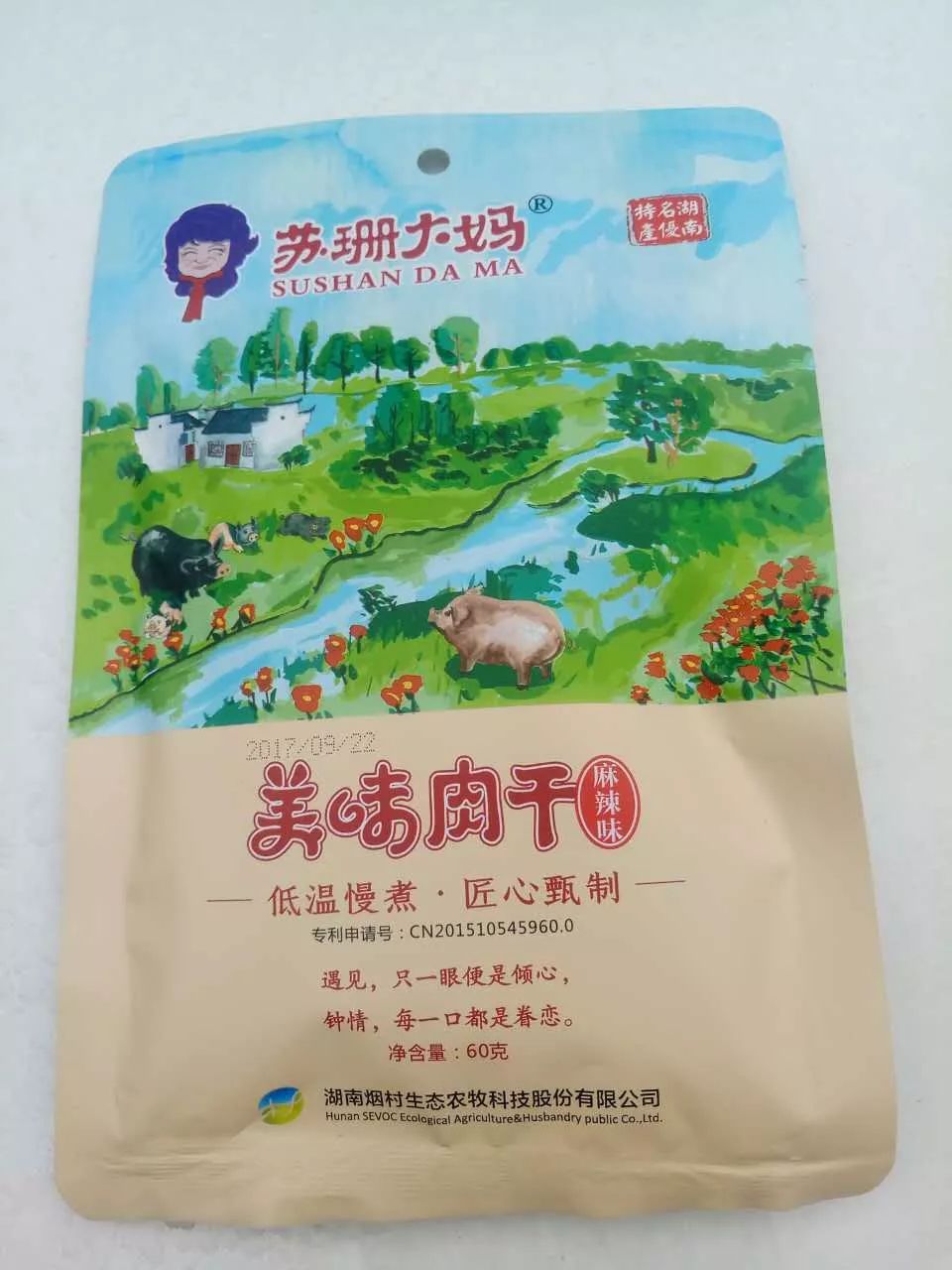 礼包一:湖南烟村生态农牧科技股份有限公司提供的价值19.8元苏珊大妈麻辣肉