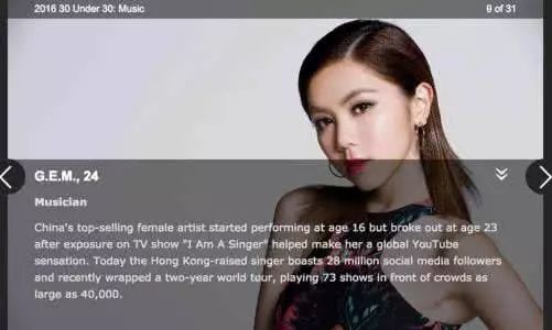 邓紫棋(G.E.M.),1991年8月16日生于中国上海,4岁移居香港,中国香港创作型女歌手。