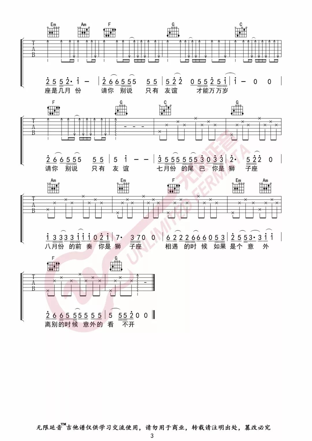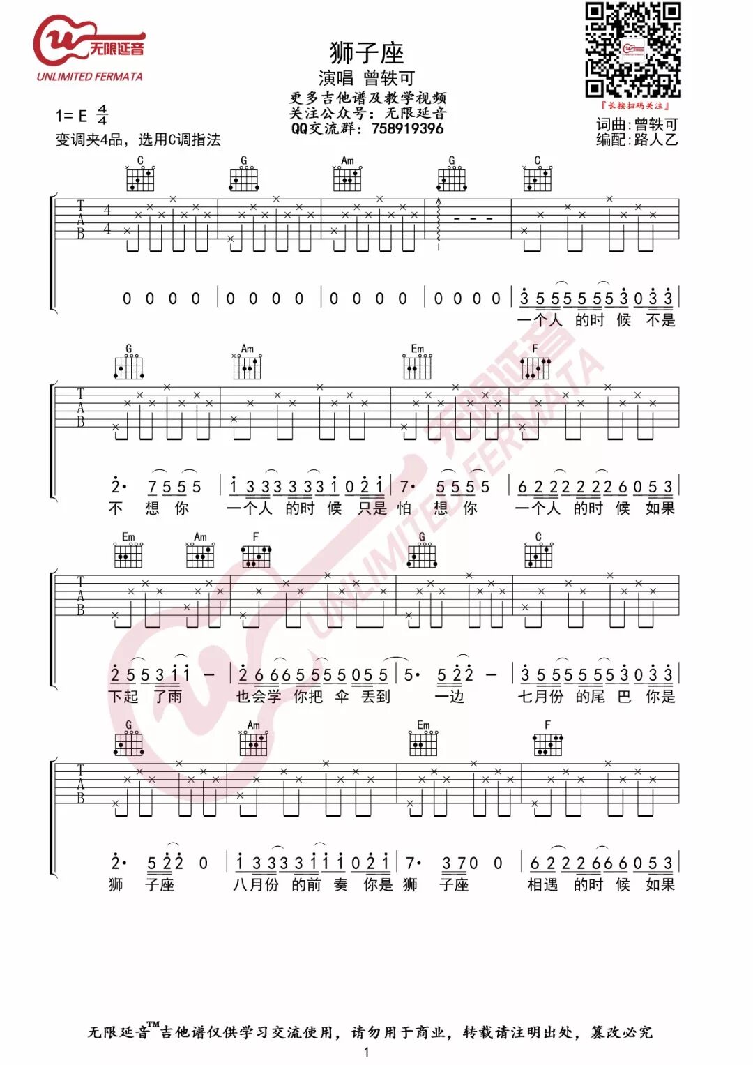 曾轶可 <狮子座>吉他谱 无限延音编配 无限延音 内地女星 2020-08-07 18:34:50 1075 创作不易,用心坚持,欢迎请BaGua喝几杯爱心咖啡!打赏并支持本文 打赏并删除本文 1歌曲介绍 《狮子座》是曾轶可创作的一首歌曲,由曾轶可作曲,作词并演唱。收录于她2010年发行的专辑《Forever Road》中,是曾轶可的代表作品之一。 曾轶可是一个纯粹的歌手,她未接受过多的商业合作,虽身处浮华的流行乐坛,却以特立独行的率真性情受到挑的独立音乐乐迷乃至音乐人的偏爱。她的创作能更进一步的深入感情世界,而且自从出道以来没有任何绯闻发生,非常一位干净的歌手。2音乐3吉他谱如果您喜欢无限延音制作分享的吉他谱,请点击右上角分享到您的朋友圈,我们会每天更新高质量吉他谱。 创作不易,用心坚持,欢迎请BaGua喝几杯爱心咖啡!打赏并支持本文 打赏并删除本文 感谢您的支持鼓励,我会继续努力的!文章地址:用户邮箱:打赏金额:USDT 请输入数字点击”去打赏“,即可进行打赏支持本文章哦 曾轶可 About the Author 无限延音 功能介绍:每日推荐高质量吉他谱、视频及教学资源,吉他爱好者交流学习平台。 Related Posts 【每日一谱】最后一页 - 江语晨 吉他谱 无限延音编配 2023-05-18 12:02:25 【每日一谱】爱与诚 - 古巨基 吉他谱 无限延音编配 2022-09-07 12:00:57 【周杰伦精选吉他弹唱曲集】一次订阅,永久使用,定期更新. 2022-06-06 12:00:23 黄贯中朱茵放着豪宅不住,却跑到乡下种菜?!摇滚老炮的浪漫你永远不懂 2021-12-13 12:00:43 欧得洋 孤单北半球 吉他谱 无限延音编配 2020-12-09 12:00:53 发表评论