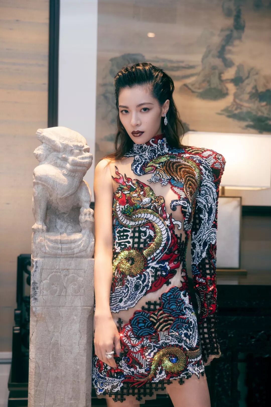 甚至到了现在,中国风刺绣印花依然是当下的流行元素。钟楚曦出席活动选了件Balmain 2019 早秋系列的中国风刺绣裙,虽然被龙与虎包围,但不对称的袖子设计竟被她穿出了前卫的科技感。