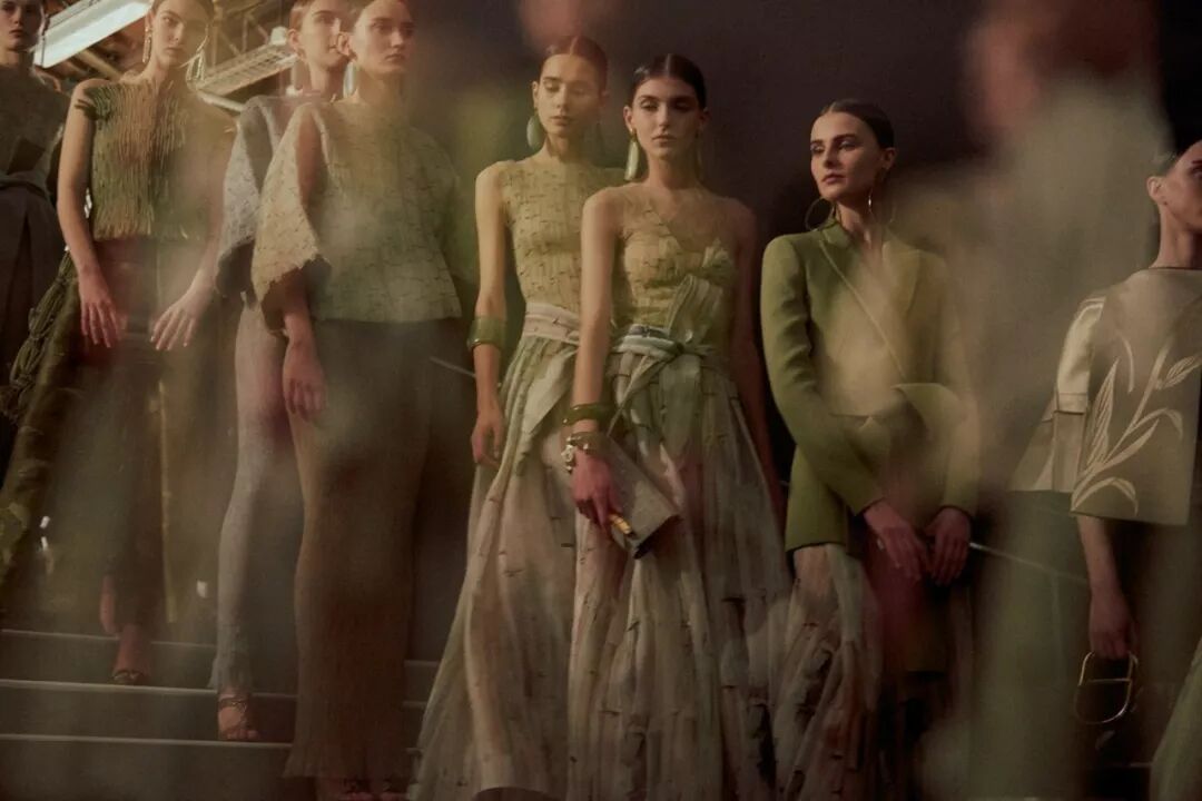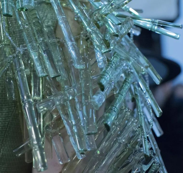 甚至还直接做成了3D立体透明竹子穿在身上,简直是东方艺术和西方工艺的融合,仿佛迈入一片曲径通幽的竹林,有着诗画般的清雅禅意。