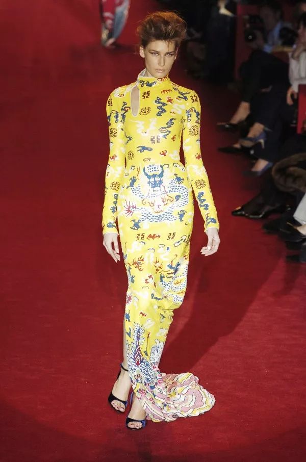 早在2004年,Tom Ford就在为Yves Saint Laurent设计的最后一个系列中借鉴了1920年代老上海的风格,BlingBling的亮片裙竟然加入了龙袍元素。