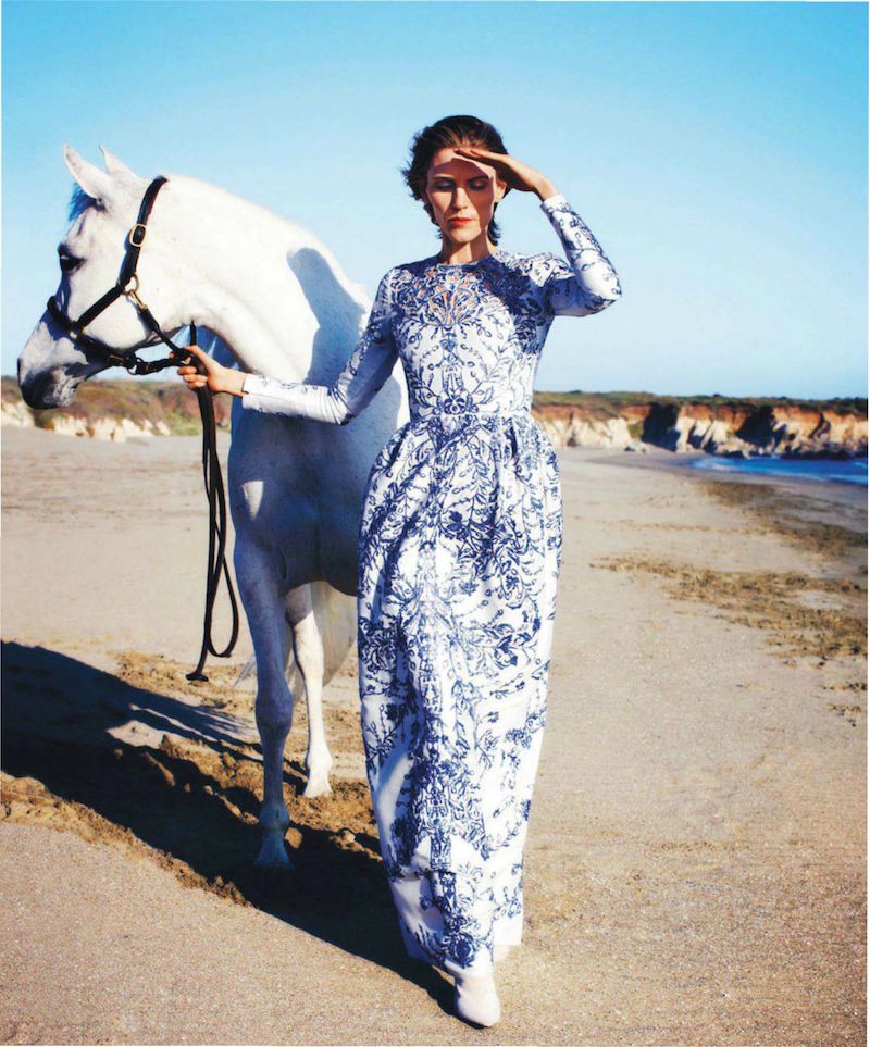 Roberto Cavalli真的对青花瓷异常偏爱,2013年度假系列一整季都是以青花瓷为设计灵感,模特们好像穿着一件件艺术品站在欧式大花园里。