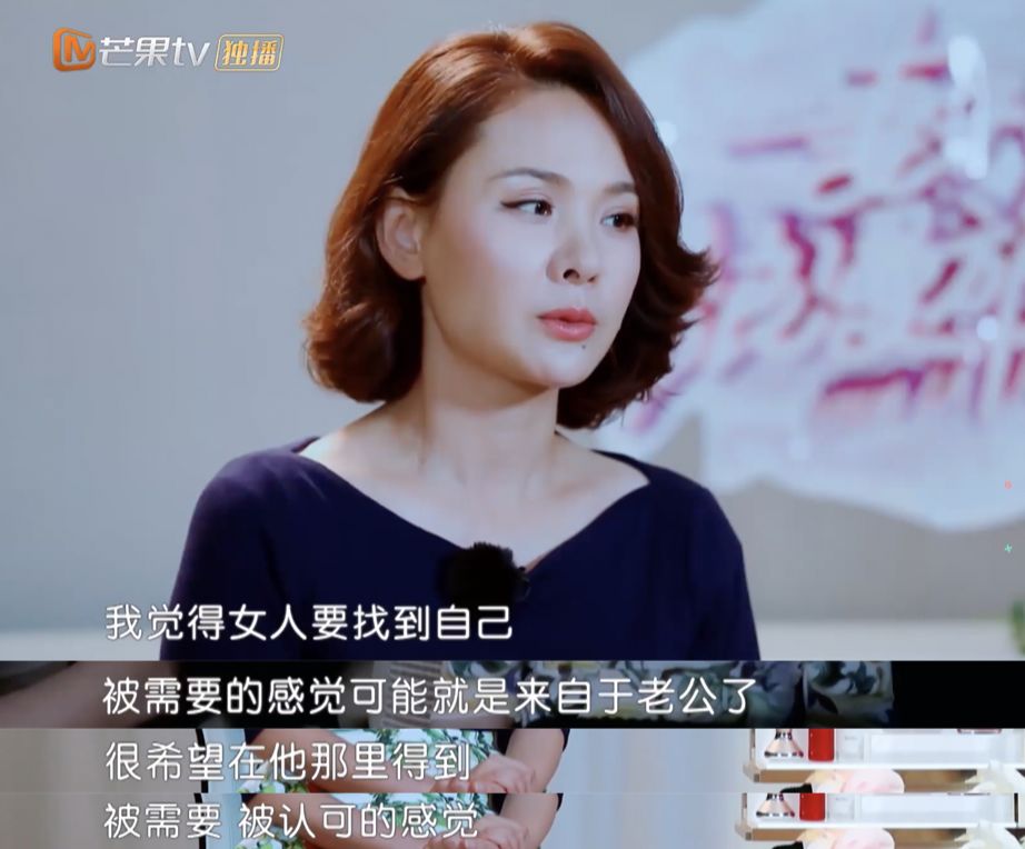 她曾经在节目中表示:“我觉得女人要找到自己,被需要的感觉可能就是来自于老公了。所以我很希望在他那里得到被需要、被认可的感觉。”