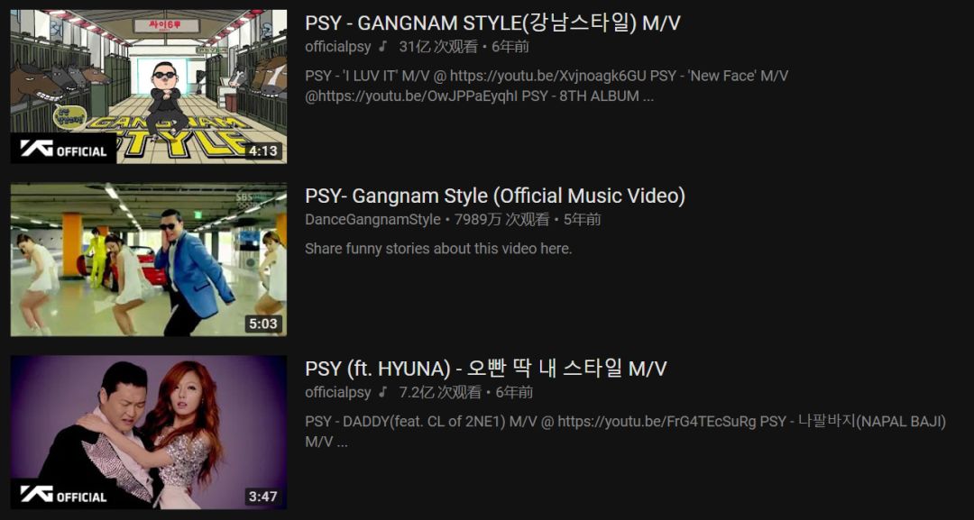 在《江南 Style 》之前, PSY (本名朴载相)还只是一个在韩国小有名气的一人,而这首歌使他一跃成为了世界级明星,全美音乐奖颁奖典礼的压轴演出、《时代周刊》年度人物提名、和潘基文一起跳骑马舞……他所做出的成绩是历代韩国艺人所没有的。