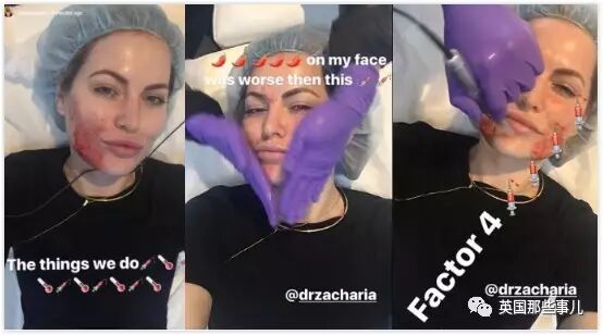 随后,金氏妹妹 Khloe Kardashian 的INS Story现场直播自己做的PRP皮肤护理过程。
