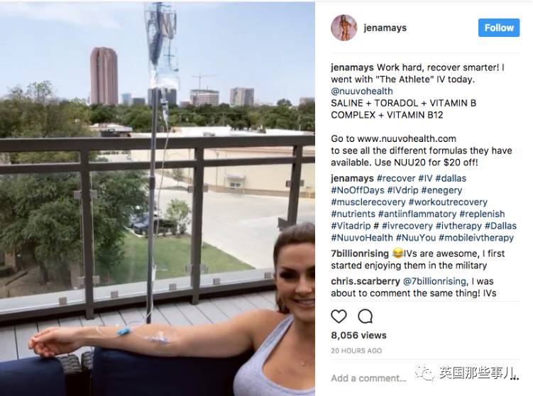 比如说澳洲名模Ashley Hart, 还有ABC的女主播Phoemela Baranda,美国健身网红教练Jena Mays,纷纷在INS上面分享自己在挂点滴的照片。