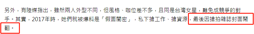 据台媒爆料,早就2017年,她俩就被扒是“假脸姐妹”,因为私下两人会抢工作、抢资源,而两人闹翻的原因,是因为争抢杂志封面的拍摄。