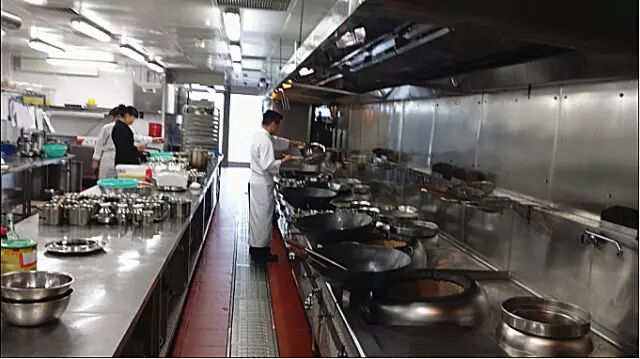 餐厅的灯光重文化,厨房的灯光重实用。这里的实用,主要指临炉炒菜要有足够的灯光以把握菜肴色泽;案板切配要有明亮的灯光,以有效防止刀伤和追求精细的刀工;出菜打荷的上方要有充足的灯光,切实减少杂草混入并流入餐厅等等。厨房灯光不一定要像餐厅一样豪华典雅、布局整齐,但其作用绝不可忽视。