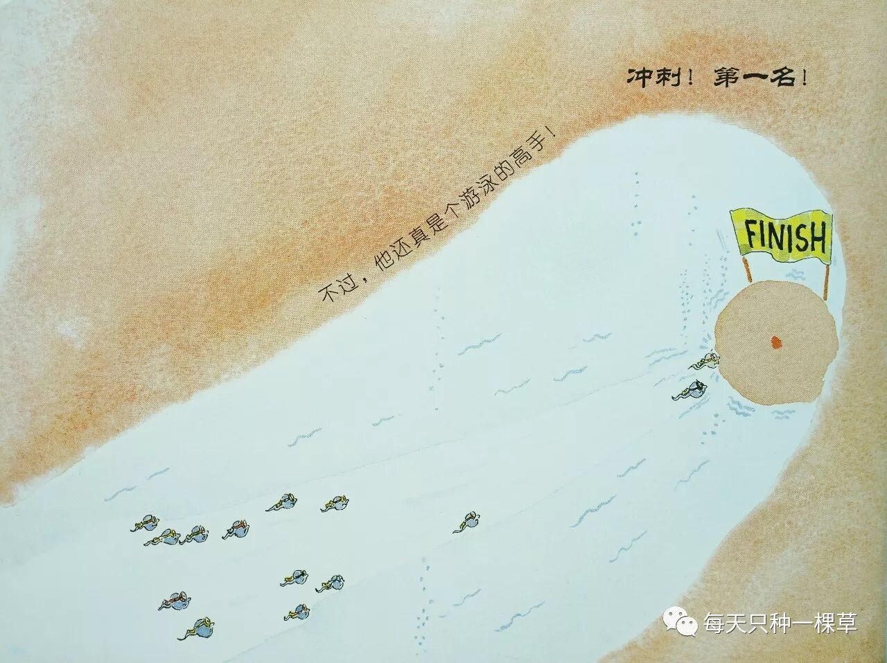 画风当然没有日本选手那么亲切可爱,讲的是一个叫小威的精子,虽然数学很差,但游泳超级棒,最后在一场大型游泳比赛当中脱颖而出的故事。