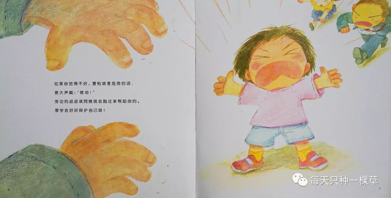 山本直英写的是:如果你觉得不好、害怕、或者危险的话,要大声喊救命。这样一说,再小的小盆友也都能明白了。