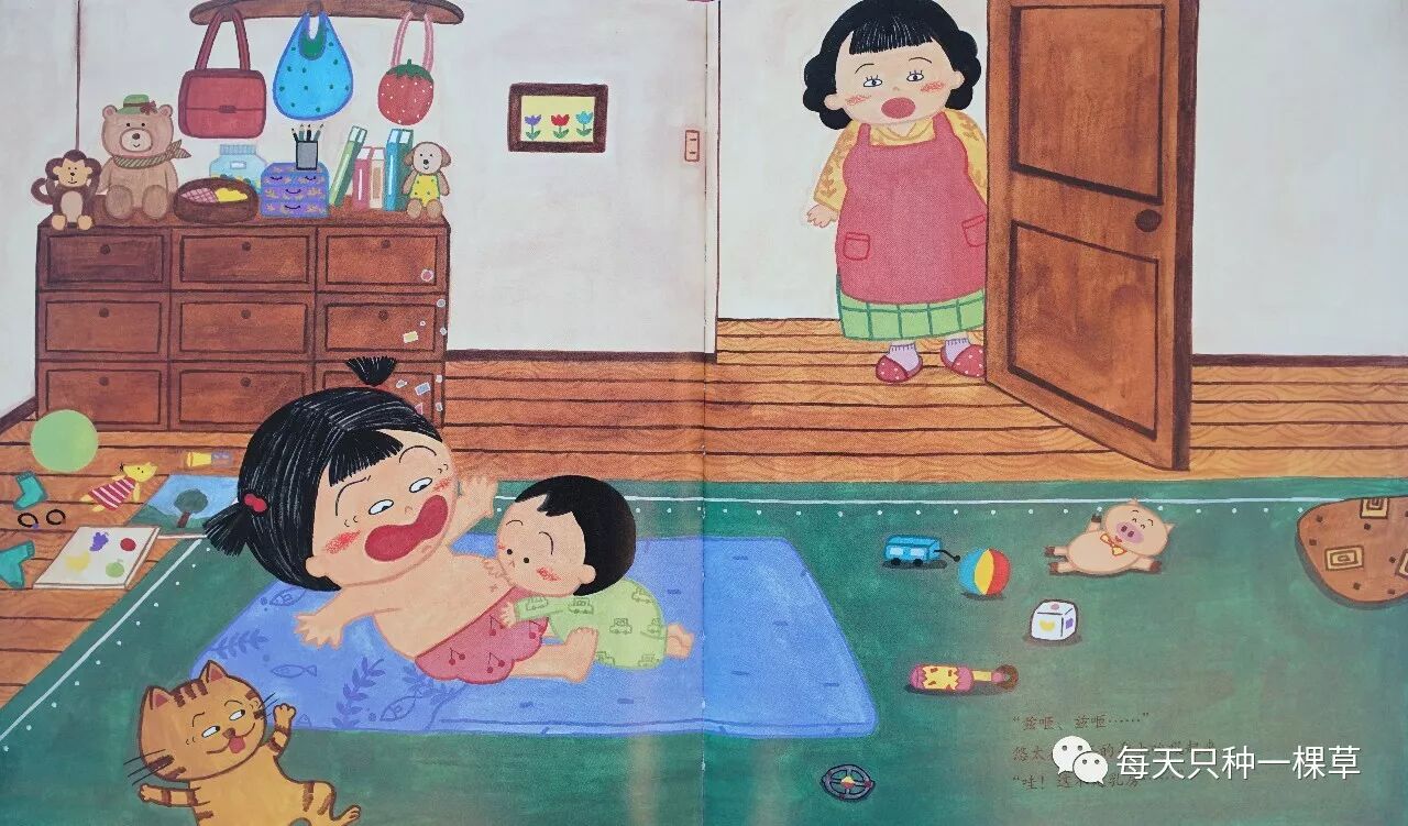 现在我身边有蛮多盆友都二胎了,这本书就是讲两个小盆友的互动,又日常又有趣,而且每一页的生活场景都栩栩如生,瓜几每次看都可以在背景看到新细节,跟《妈妈买绿豆》一样让人欲罢不能。