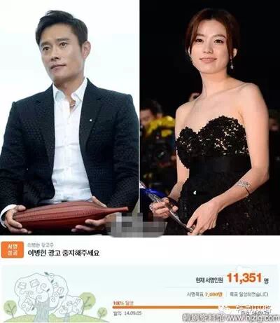 9月5日某网站的请愿留言板上首先出现了一个名为“请停止李秉宪的广告”帖子,到9月26日上午8点,签名者超过了1万1350名。之后还有“要求李秉宪和韩孝珠退出娱乐圈。”“强烈要求李秉宪韩孝珠退出广告、电影、电视剧”等活动,签名者分别超过了2580名和6410名,即将达到目标值。