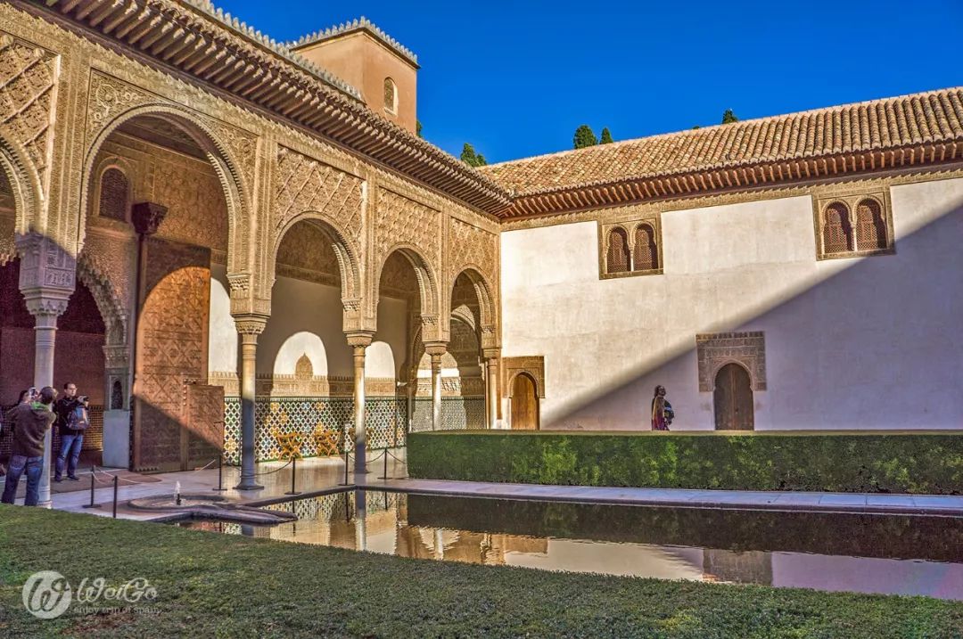 阿尔罕布拉宫位于格拉纳达的北端,中世纪摩尔人在此建立的王国的王宫,其名字来自于阿拉伯语,意为“红堡”,是阿拉伯建筑艺术的精华。