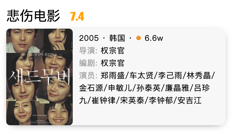 这是一部很简单的电影,没有大气恢宏的场景,没有生死相随的爱情,有的只是简简单单的喜欢和关心,简单到让我们为之动容。