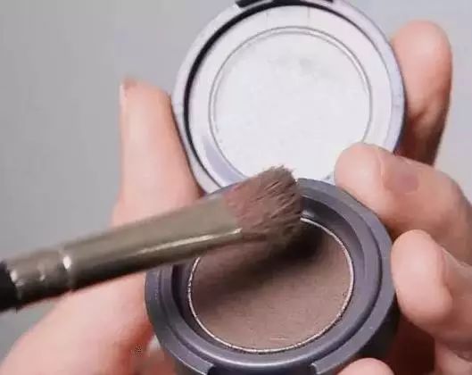 Step 2:用眼影棒沾取深色眼影或阴影粉,刷在头发空隙和需要填补的地方。注意要用眼影棒宽的一面,这样更易晕染哦!▼