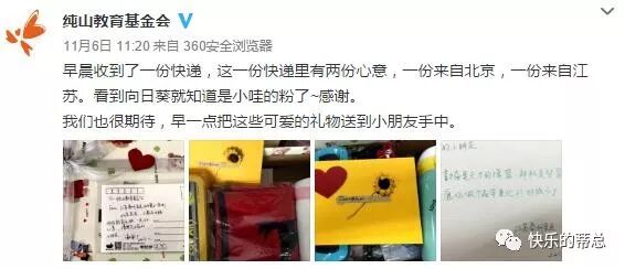不仅钟汉良二十多年来一直低调行善,身体力行支持公益慈善活动。在他的带领下,钟汉良的“良家族”也跟随自己的偶像,坚持做公益做善事。 每一年纯山教育基金的鞋盒礼物活动,都有钟汉良粉丝的积极参与,今年也不例外。很多良民,早早的准备好温馨实用的礼物,并把它们放在精心打扮过的鞋盒里,寄给偏远地区需要这些物品的孩子们手里。每一份礼物都代表着一份关爱一份正能量,也代表着对偶像的支持。