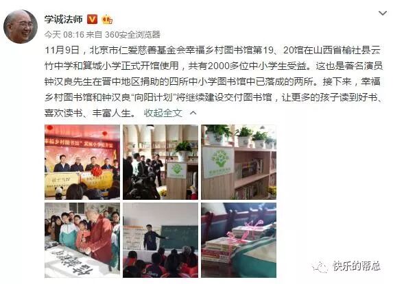 钟汉良不仅在剧中致力公益,戏外,他也将公益做到了更多样的形式。钟汉良参与了“幸福乡村图书馆”项目和良家族共同发起的“向阳计划”,让更多的孩子体验到了阅读的乐趣。11月11日“幸福乡村图书馆“”第19、20馆在山西省榆社县云竹中学和箕城小学正式开馆使用,这是钟汉良在大晋中地区捐助的前两所馆,总共有2000多位中小学生受益。他一直希望将“移动图书馆”的概念与更多的人分享,让更多的孩子喜欢阅读,透过阅读来丰富人生。