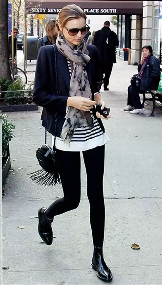 打底裤搭配踝靴能拉长腿部线条,如果你的腿型还不错,一定要这样穿穿看,不管身高如何比例都能达到最佳。
