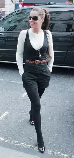 不愧为“英伦十大体育宝贝”之一,Cheryl Cole的身材相当不错嘛。黑色打底裤拉长了腿部线条,让明星看上去更有女人味,演绎出时髦的性感风情。